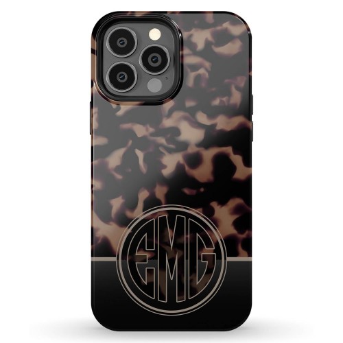 Lovely dark tortoise shell pattern iPhone case with your personalized 3 letters monogram and a full wrap edge-to-edge print!