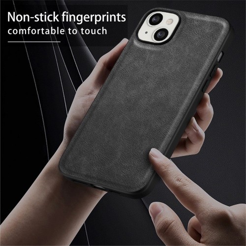 For iPhone 15 Plus PU Leather Coated TPU+PC Cover Retro Anti-scratch Phone Case – Black