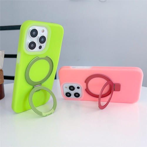 For iPhone 15 Pro Max Compatible with MagSafe Shockproof Phone Case Liquid Silicone+PC Cover with Kickstand – Pink