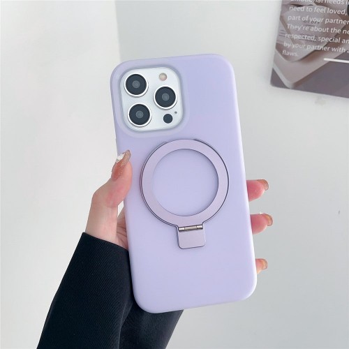 For iPhone 15 Pro Max Compatible with MagSafe Shockproof Phone Case Liquid Silicone+PC Cover with Kickstand – Purple
