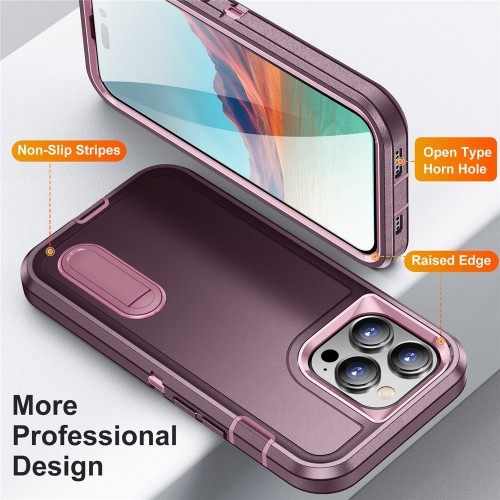 For iPhone 15 Pro Max Shockproof Phone Case Anti-Drop PC+TPU Cell Phone Cover with Kickstand – Purple / Pink