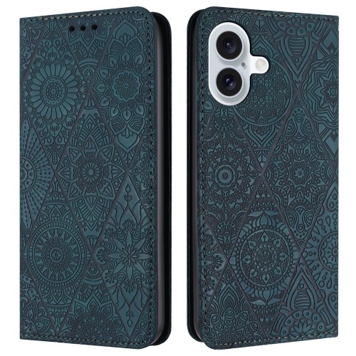 For iPhone 16 Case Imprinted Flower Wallet Stand Leather Phone Cover – Yellow