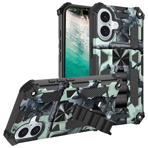 For iPhone 16 Case Kickstand PC+TPU Camouflage Military Grade Phone Cover – Blue