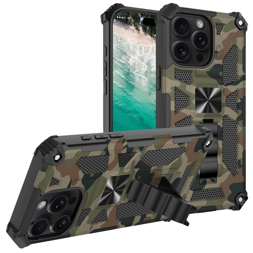 For iPhone 16 Case Kickstand PC+TPU Camouflage Military Grade Phone Cover – Navy Blue