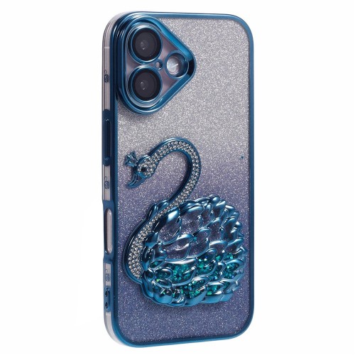 For iPhone 16 Case Swan Design Quicksand TPU Phone Cover with Glass Lens Film – Black