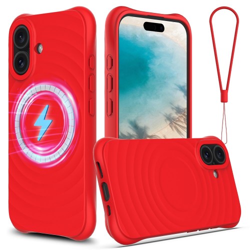For iPhone 16 Plus Case Compatible with MagSafe Ripple Texture Liquid Silicone Protective Cover with Strap – Pink
