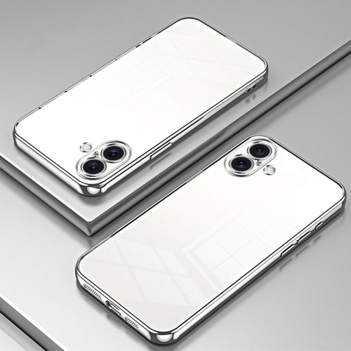 For iPhone 16 Plus Case Electroplating Frame Soft TPU Phone Cover – Silver