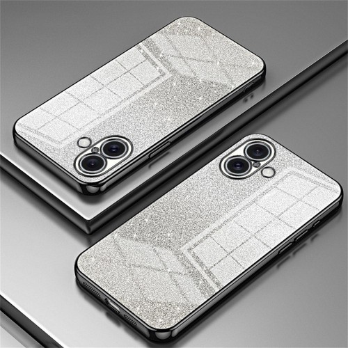 For iPhone 16 Plus Case Electroplating Gradient Glitter TPU Phone Cover – Black