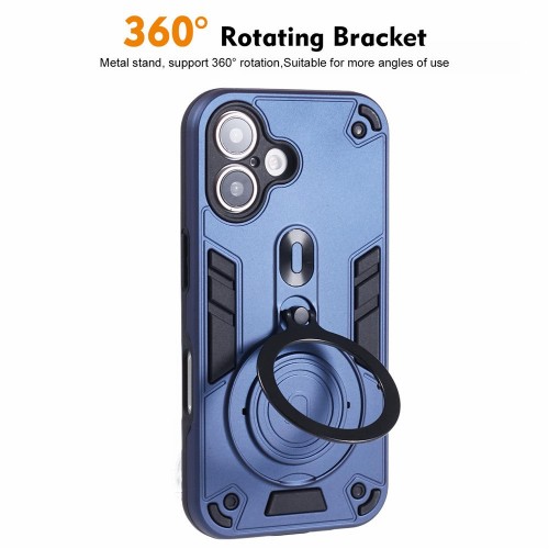 For iPhone 16 Plus Case Rotatable Kickstand PC+TPU Drop Protection Phone Cover – Blue