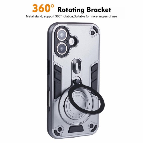 For iPhone 16 Plus Case Rotatable Kickstand PC+TPU Drop Protection Phone Cover – Silver