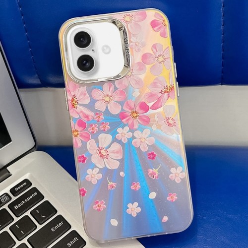 For iPhone 16 Plus Electroplating Laser Flower Texture TPU Phone Case(Blue Flower AH8)