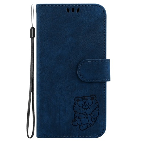 For iPhone 16 Plus Little Tiger Embossed Leather Phone Case(Dark Blue)