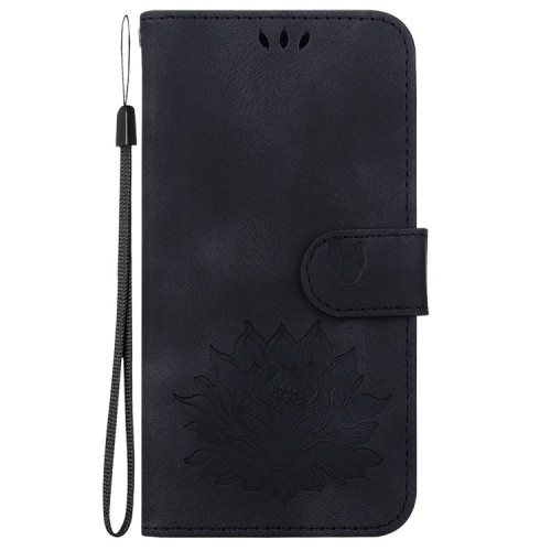 For iPhone 16 Plus Lotus Embossed Leather Phone Case(Black)