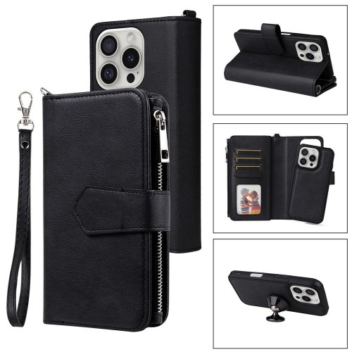 For iPhone 16 Plus Magnetic Leather Case Mobile Cover with Detachable Zipper Wallet Strap – Purple