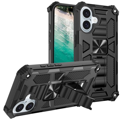 For iPhone 16 Plus Phone Case Kickstand Drop Protection PC + TPU Back Cover – Red