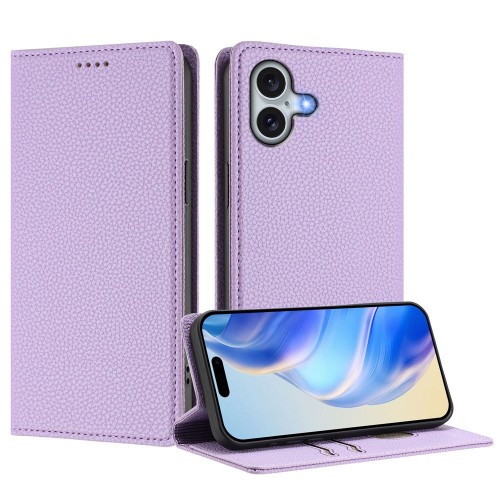 For iPhone 16 Plus Wallet Case RFID Blocking Litchi Texture Leather Mobile Cover – Light Purple