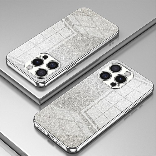 For iPhone 16 Pro Case Electroplating Gradient Glitter TPU Phone Cover – Silver