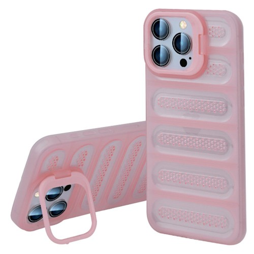 For iPhone 16 Pro Case Heat Dissipation Kickstand Airbags Anti-Drop TPU+PC Phone Cover – Transparent Green