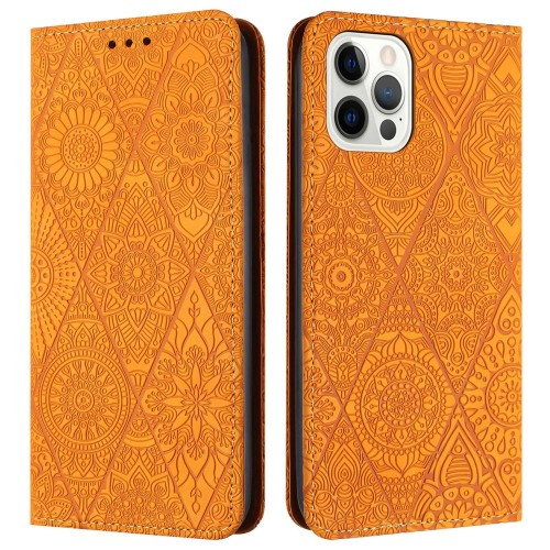 For iPhone 16 Pro Case Imprinted Flower Wallet Stand Leather Phone Cover – Purple