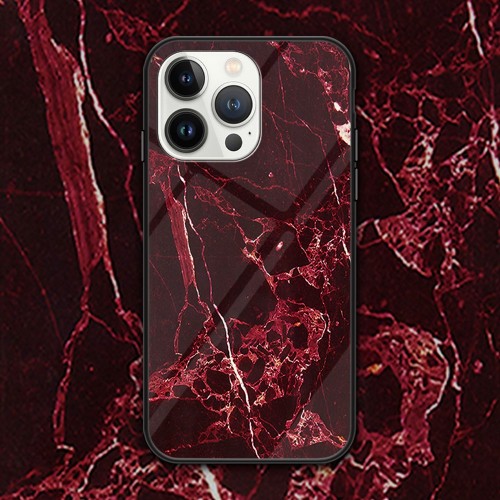 For iPhone 16 Pro Case Marble Pattern Tempered Glass + PC + TPU Protective Phone Cover – Blood Red Marble