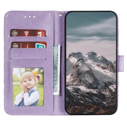 For iPhone 16 Pro Case PU Leather Mandala Imprinted Design Wallet Phone Cover – Purple