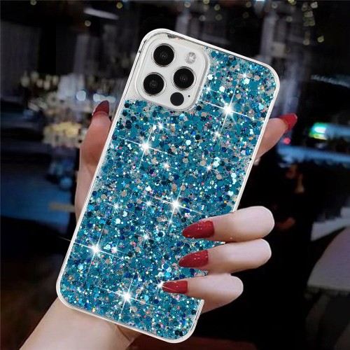 For iPhone 16 Pro Case TPU Drop Protection Epoxy Glittery Sequins Phone Cover – Blue