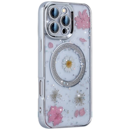 For iPhone 16 Pro Magnetic Case PC+TPU Epoxy Real Dried Flower Phone Cover – Daisy
