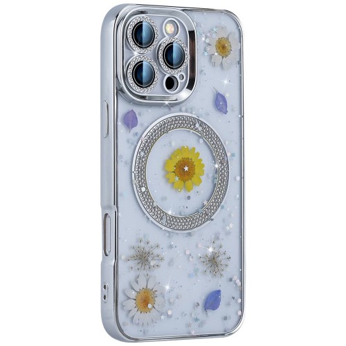 For iPhone 16 Pro Magnetic Case PC+TPU Epoxy Real Dried Flower Phone Cover – Lobelia Erinus