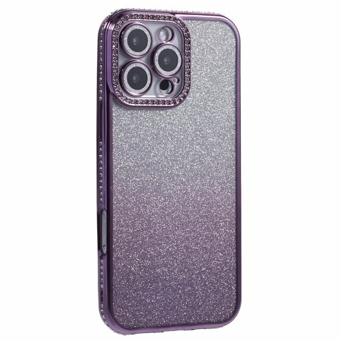 For iPhone 16 Pro Max Case Camera Lens Guard Clear Phone Back Cover Rhinestone Decor With Glitter Paper – Dark Purple
