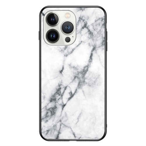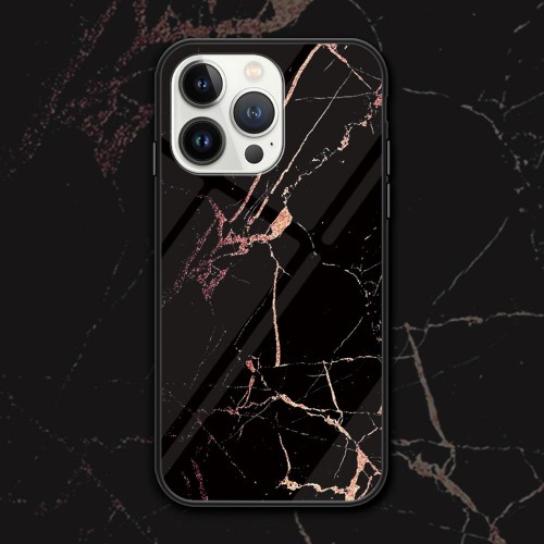 For iPhone 16 Pro Max Case Marble Pattern Tempered Glass + PC + TPU Protective Phone Cover – Gold Black Marble