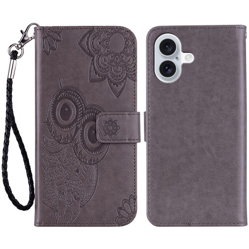 For iPhone 16 Pro Max Case Owl Flower Imprinted Leather Cover Wallet with Strap – Gold
