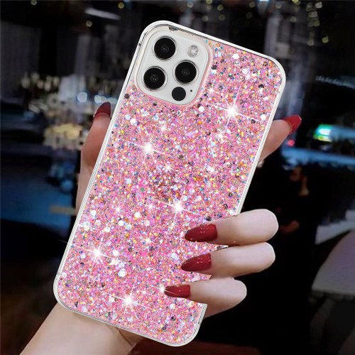For iPhone 16 Pro Max Case TPU Drop Protection Epoxy Glittery Sequins Phone Cover – Pink