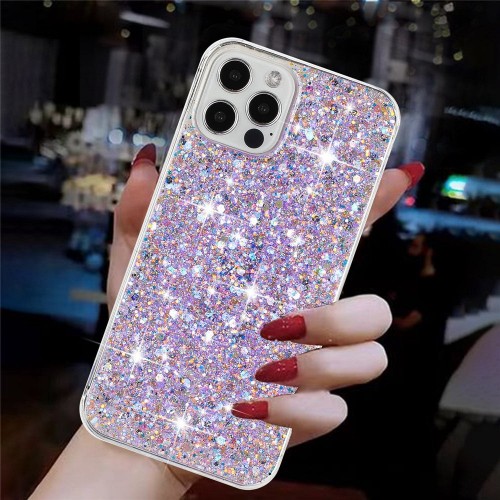 For iPhone 16 Pro Max Case TPU Drop Protection Epoxy Glittery Sequins Phone Cover – Purple