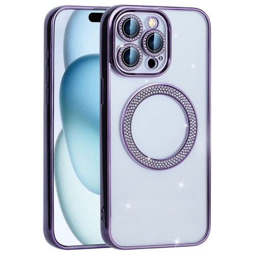 For iPhone 16 Pro Max Magnetic Case Bling Rhinestone Clear TPU + PC Phone Cover – Black