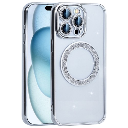 For iPhone 16 Pro Max Magnetic Case Bling Rhinestone Clear TPU + PC Phone Cover – Purple