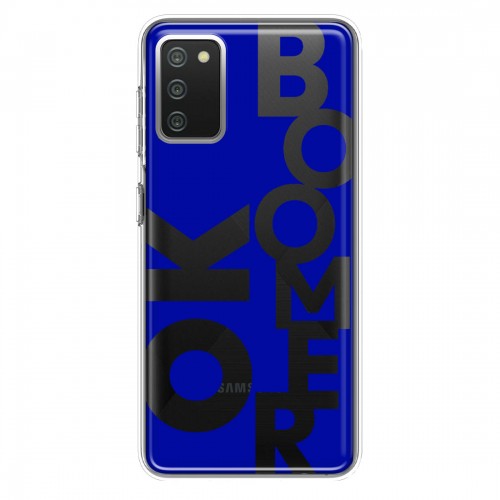 For Samsung Galaxy A02 Blue Clear Funny Text Quote Ok Boomer Design Hybrid Protective Phone Case Cover