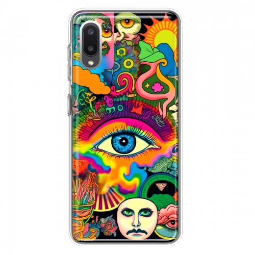 For Samsung Galaxy A02S Neon Rainbow Psychedelic Trippy Hippie Multiple Eyes Design Hybrid Protective Phone Case Cover