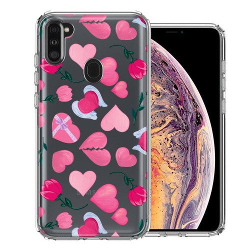 For Samsung Galaxy A11 Cute Valentine Pink Love Hearts Fries Before Guys Double Layer Phone Case Cover