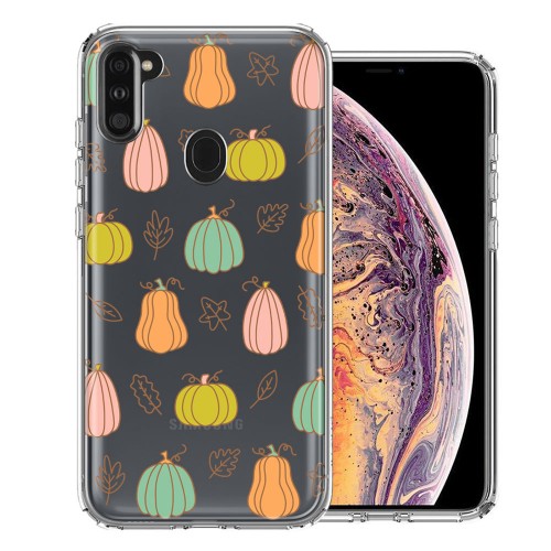 For Samsung Galaxy A11 Spooky Season Fall Autumn Flowers Ghosts Skulls Halloween Double Layer Phone Case Cover