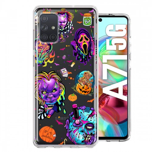 For Samsung Galaxy A71 4G Roses Halloween Spooky Horror Characters Spider Web Design Hybrid Protective Phone Case Cover