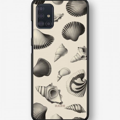 This design features: beach style, ocean theme, monochrome, seashells