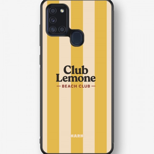 This design features: beach club, lemon, striped, summer