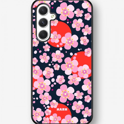 This design features: cherry blossoms, navy, spring, japan, sakura