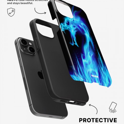 Meet the Tough Case for iPhone 12 / iPhone 12 Pro in Blue Flames Dragon. Strong on the outside, soft on the inside. This case is made to protect your phone from daily drops, scratches and surprises while keeping it stylish.