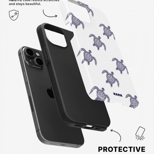 Meet the Tough Case for iPhone 12 / iPhone 12 Pro in Blue Turtles. Strong on the outside, soft on the inside. This case is made to protect your phone from daily drops, scratches and surprises while keeping it stylish.