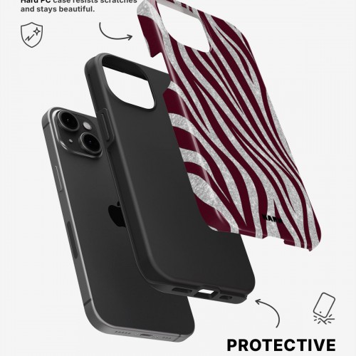 Meet the Tough Case for iPhone 13 Mini in the pattern: Velvet Zebra. Strong on the outside, soft on the inside. This case is made to protect your phone from daily drops, scratches and surprises while keeping it stylish.