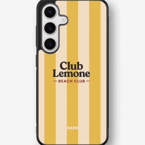 This design features: beach club, lemon, striped, summer