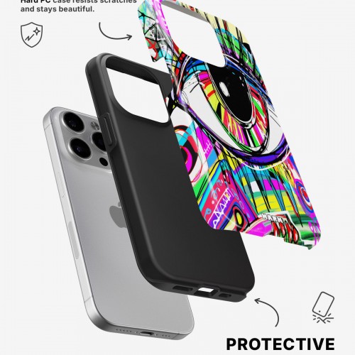 Meet the Tough Case for iPhone 13 Pro Max in the pattern: Abstract Eye. Strong on the outside, soft on the inside. This case is made to protect your phone from daily drops, scratches and surprises while keeping it stylish.