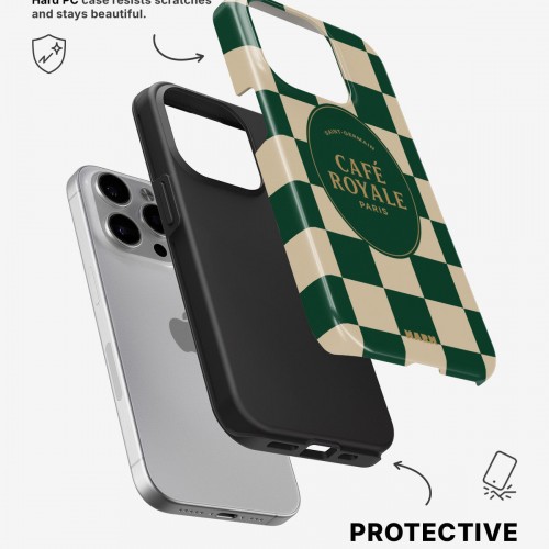 Meet the Tough Case for iPhone 13 Pro Max in the pattern: Cafe Royale. Strong on the outside, soft on the inside. This case is made to protect your phone from daily drops, scratches and surprises while keeping it stylish.