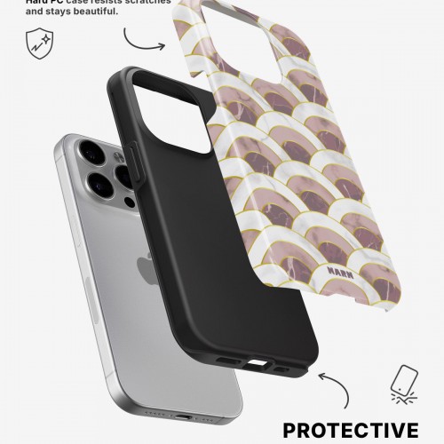Meet the Tough Case for iPhone 13 Pro Max in the pattern: Pink Marble Waves. Strong on the outside, soft on the inside. This case is made to protect your phone from daily drops, scratches and surprises while keeping it stylish.